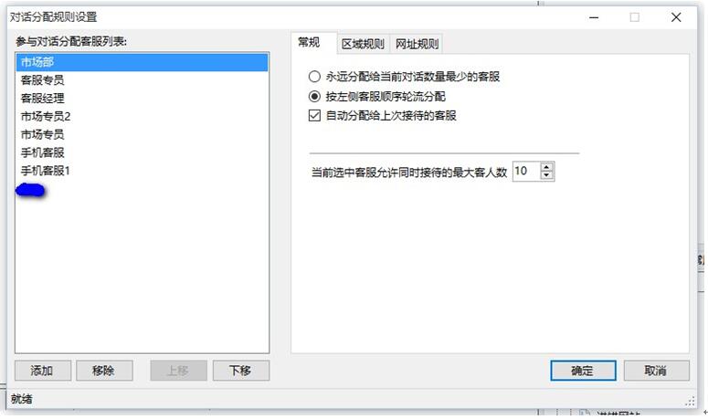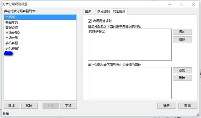 在线客服软件网站多客宝可以设置不同的客服分配规则,比如,什么类型的访客分配给指定的在线客服人员,或者什么区域的访客分配给对应区域的客服人员。如下图: